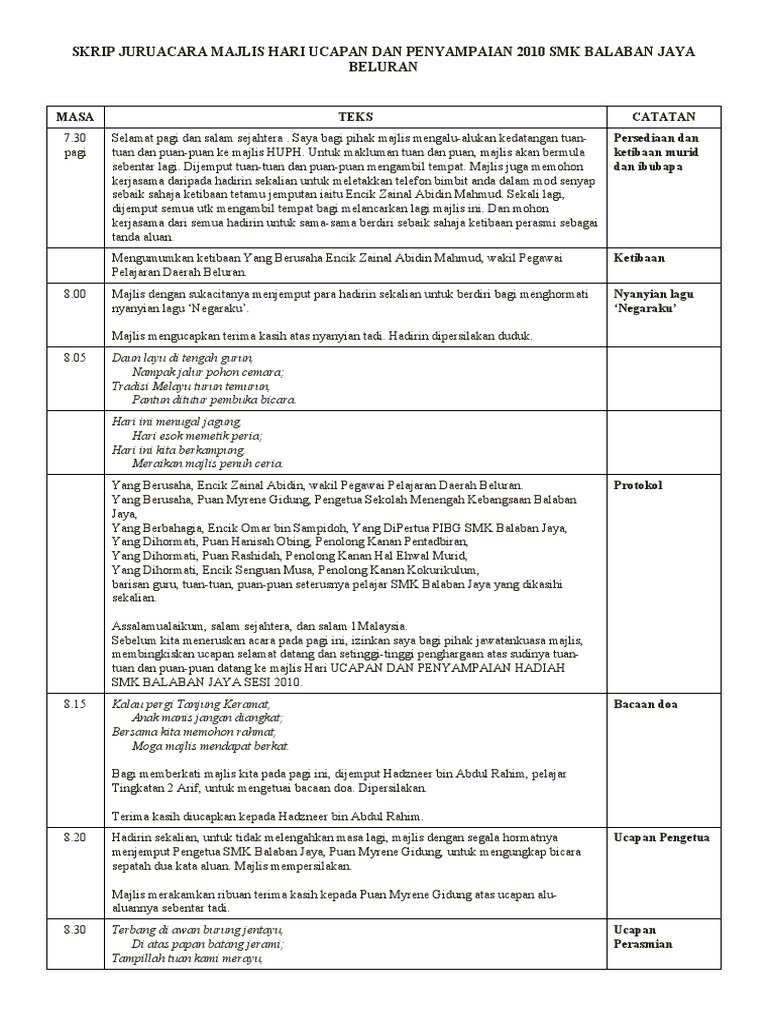 Teks ucapan pengacara majlis penyampaian hadiah. Penganan mula terletak sudah Samalah duduk menjamu selera. Assalamualaikum wbt dan selamat sejahtera. Teks pengacara majlis penutupan penyampaian hadiah minggu mata pelajaran ketibaan vip diumumkan ketibaan yang berbahagia puan deepa darshini diiringi masuk oleh barisan guru kanan bidang dan para tetamu kehormat yang lain.