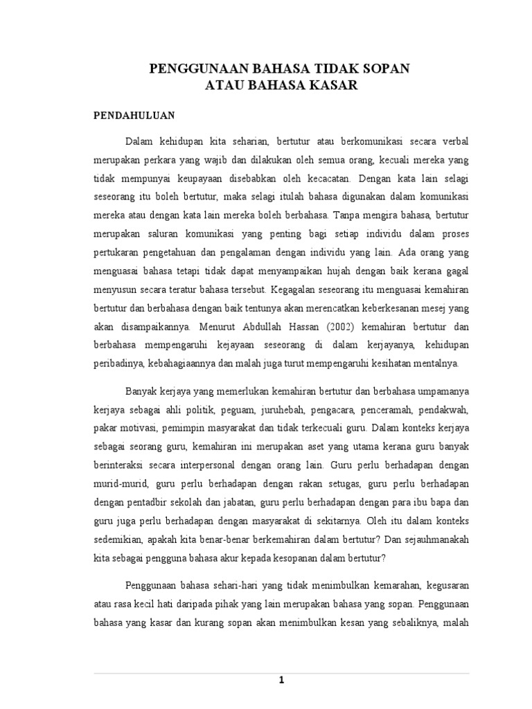Penggunaan Bahasa Tidak Sopan Atau Bahasa Kasar