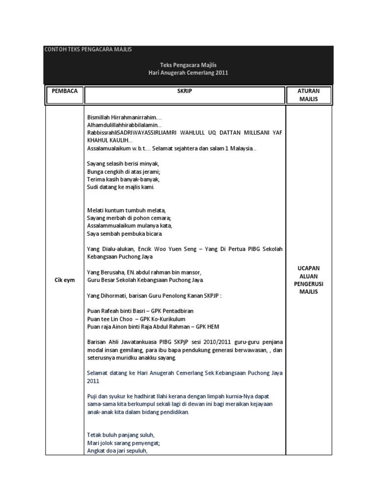 Contoh Teks Pengacara Majlis Pdf