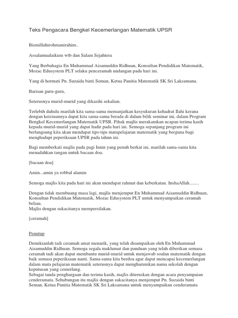 Sebelum bermulasy nk ingatkan supaya cikgu-cikgu beri perhatian dan berkerjasama sepanjang bengkel sebab kita ada anugerah di akhir program nanti. Related Posts To Teks Pengacara Majlis Teknik Menjawab Soalan Teks Pengacara Majlis Teknik Menjawab Soalan 2019-10-16T191600-0700 Rating. For more information and source see on this link.