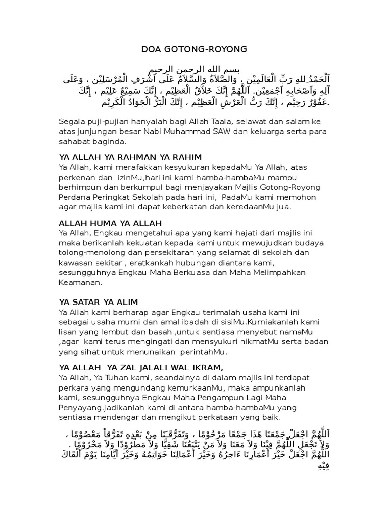 Doa majlis gotong royong perdana sekolah. Gotong royong perdana 2. Majlis Sumbangan Hamper Ramadhan kepada Anak-Anak Yatim. Check more flip ebooks related to KERTAS KERJA GOTONG ROYONG PERDANA 2019 of faizahalias.